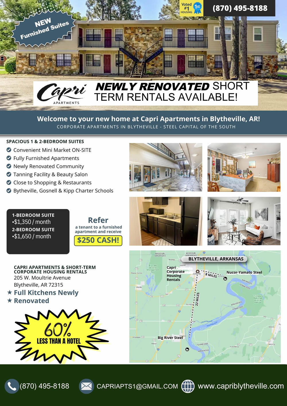 CAPRI APARTMENTS & SHORT-TERM, CORPORATE RENTALS, 205 W. Moultrie Avenue, Blytheville, AR 72315
